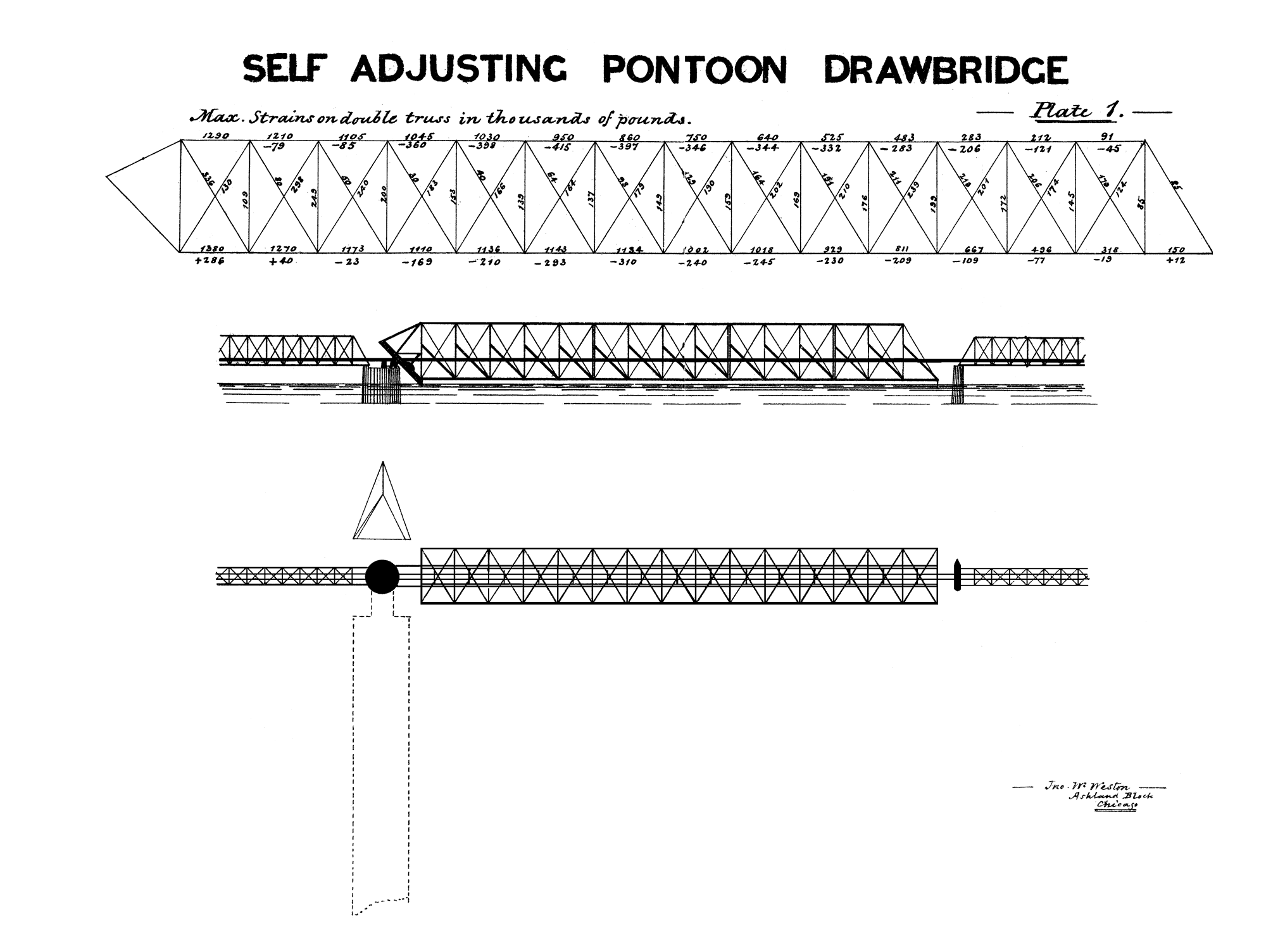 The top drawing is referred-to in the text as Plate I, the bottom drawings are referred-to as Plates II and III.